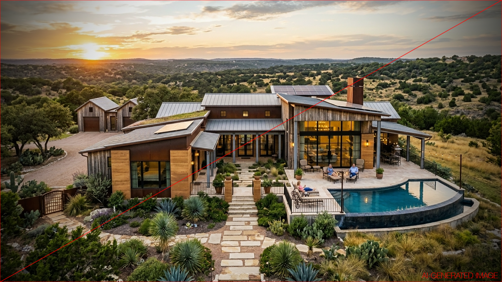 Now, of course, you can simply type in “create a high-resolution photorealistic image of a modern hacienda located in the Texas hill country,” into an AI image generator and see what happens. The image at the top of this essay was what was produced by that particular prompt. Arguably, what AI is doing is here is something to what I do. Instead of referencing hundreds of precedents any one (human) architect can think of, it can references millions.